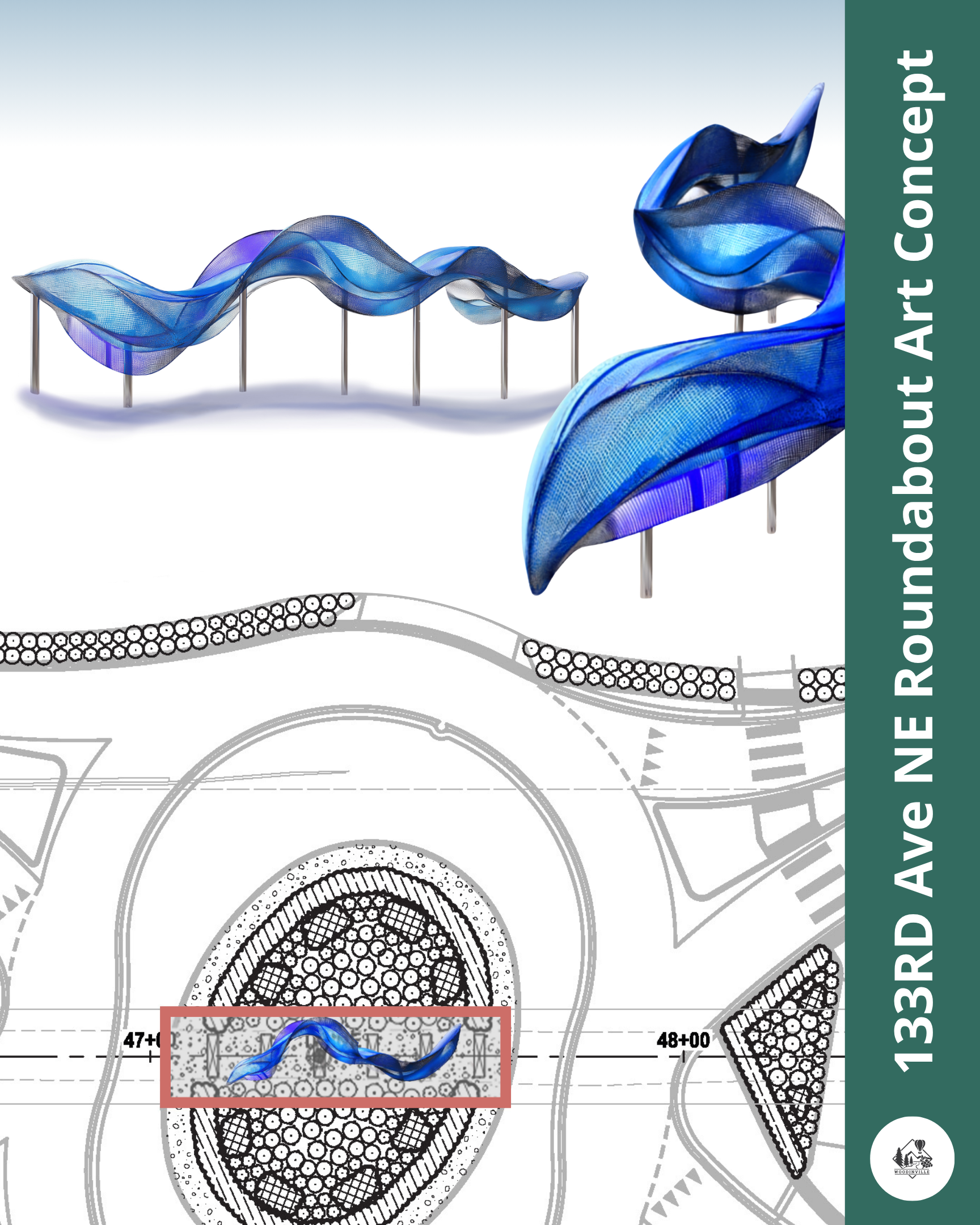 The City Council reviewed three art concepts and selected a concept for the 133rd Avenue NE Roundabout on August 5, 2025. Agenda Report 8-5-25