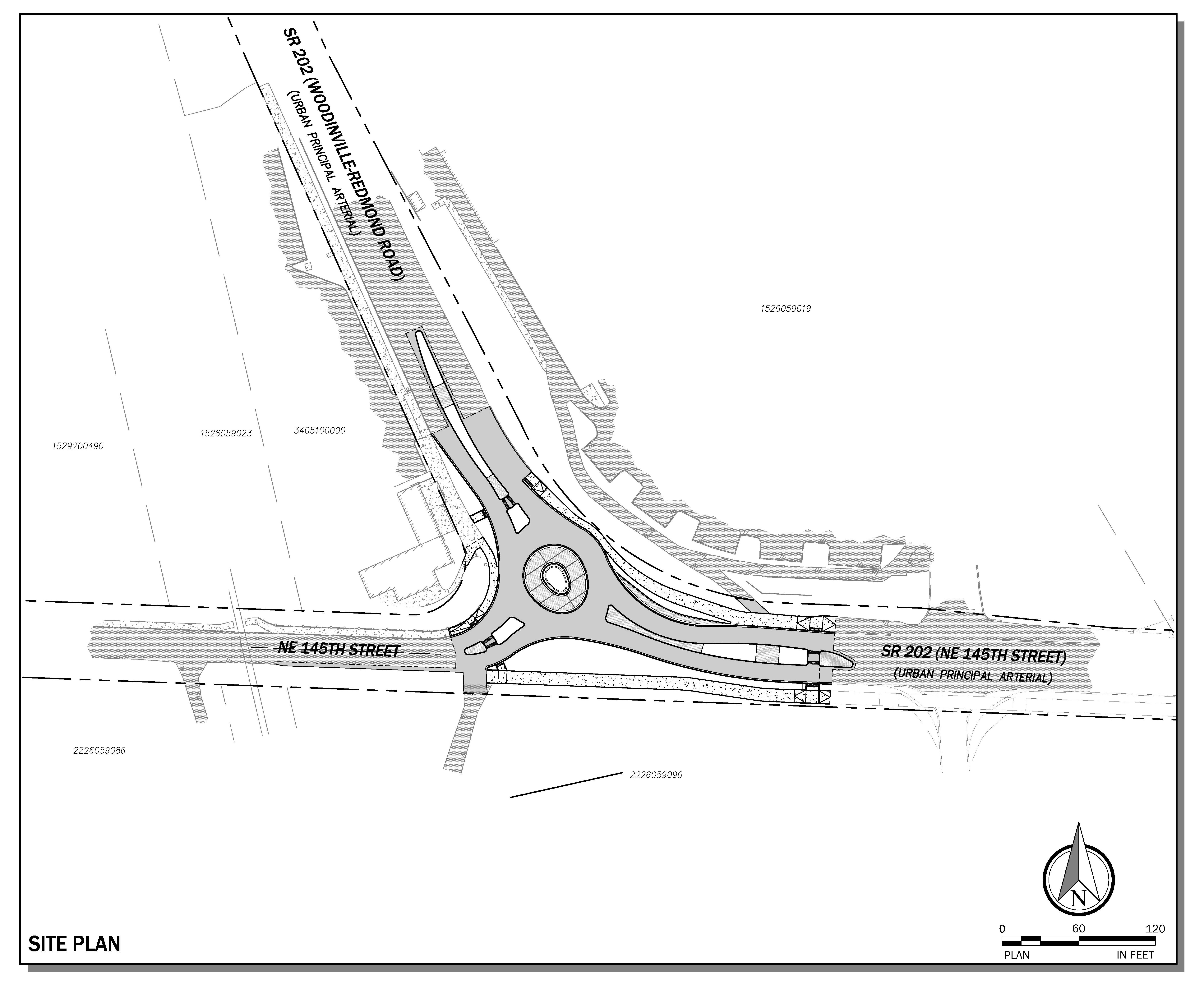 The project will construct a new roundabout at the intersection of Woodinville-Redmond Road (SR202) and NE 145th Street to improve traffic flow, increase the intersection capacity, and improve driver, cyclist, and pedestrian safety. The existing stop-controlled intersection will be replaced with a modern roundabout designed to accommodate growing traffic demand in the area.